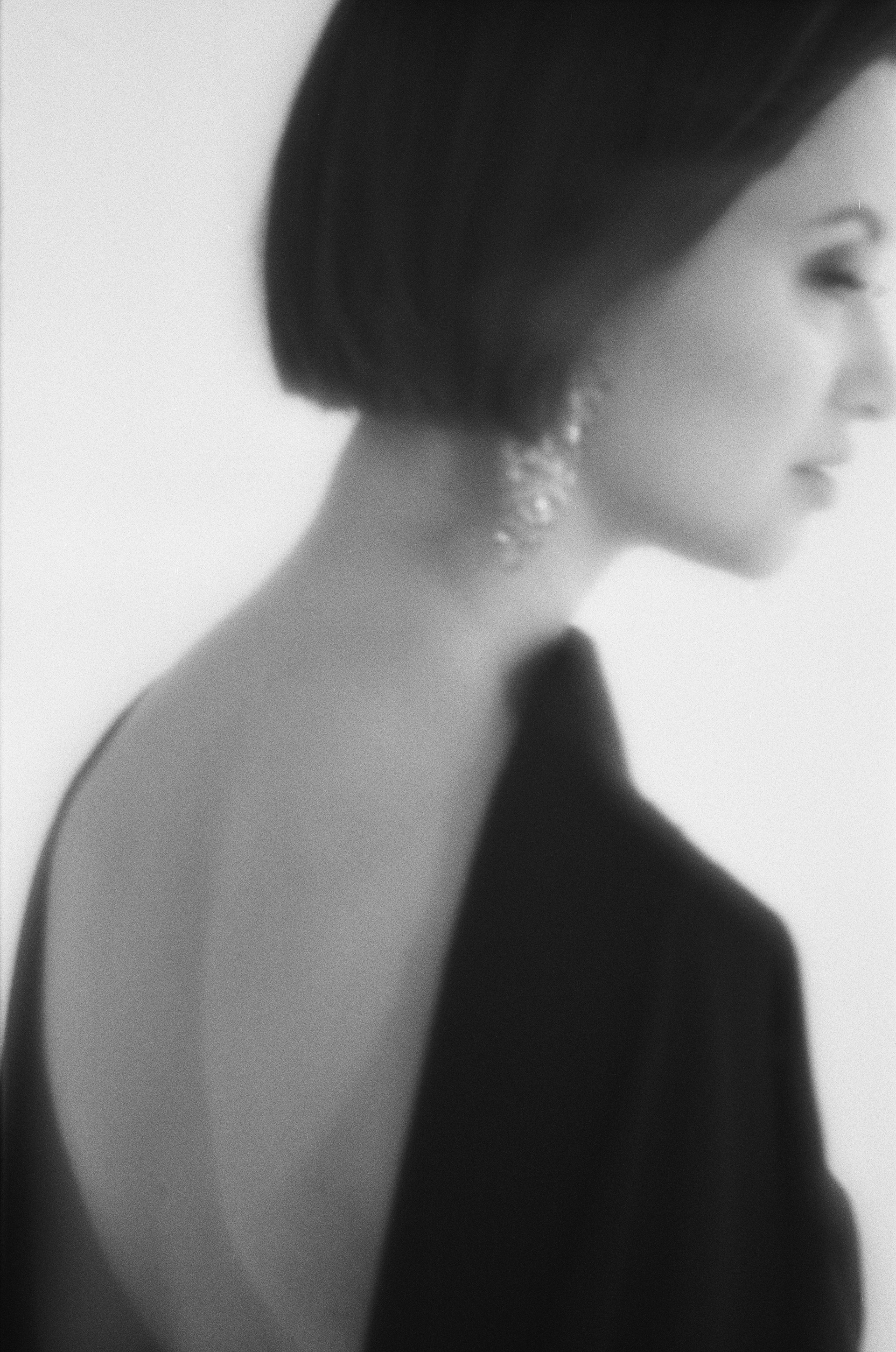 Минималистичный портрет девушки на черно-белую пленку. Портрет на пленочный фотоаппарат от фотографа в Москве, фотосессия в черно-белом стиле.